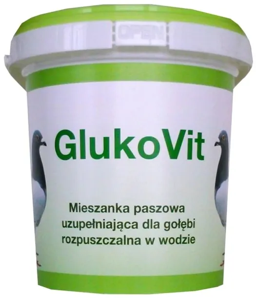 GlukoVit jest to rozpuszczalna w wodzie mieszanka uzupełniająca dla gołębi zawierająca glukozę, zestaw witamin z grupy B i witaminę C. Zawarta w mieszance glukoza stanowi źródło łatwo przyswajalnego cukru. Olbrzymi wysiłek ponoszony przez gołębia pocztowego w czasie lotu powoduje, że dostarczenie substancji energetycznych ma wpływ na usuwanie skutków zmęczenia.